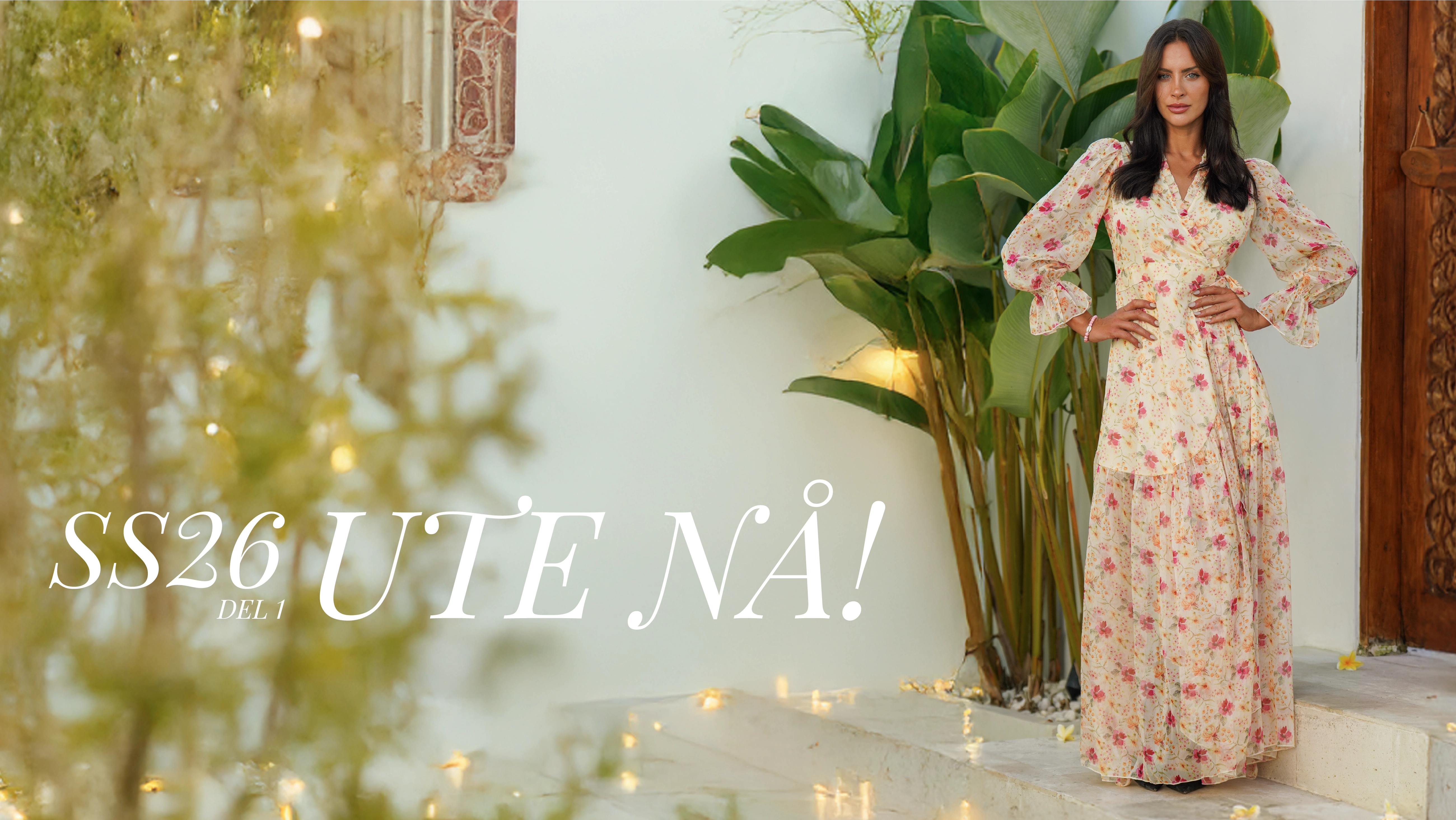 Rosa småblomstrete fotsid omslagskjole - Syrin kjole