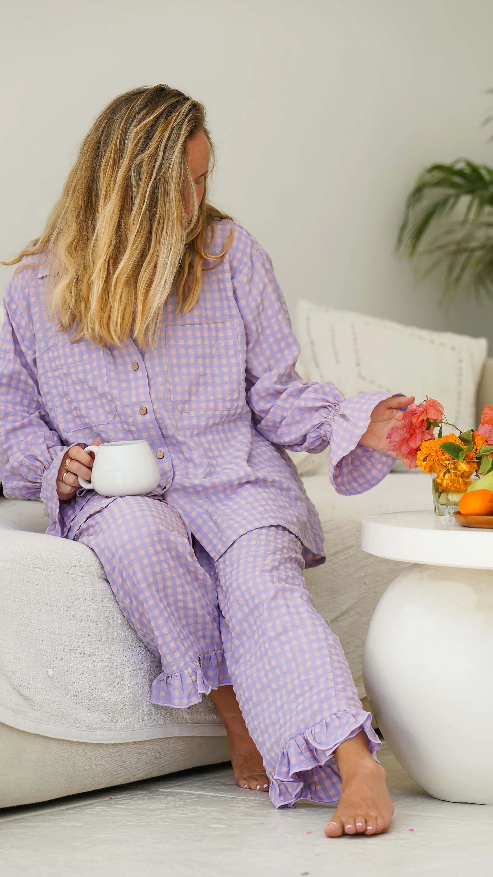 Lilla og rosa smårutete behagelig bukse - Soleie cropped bukse