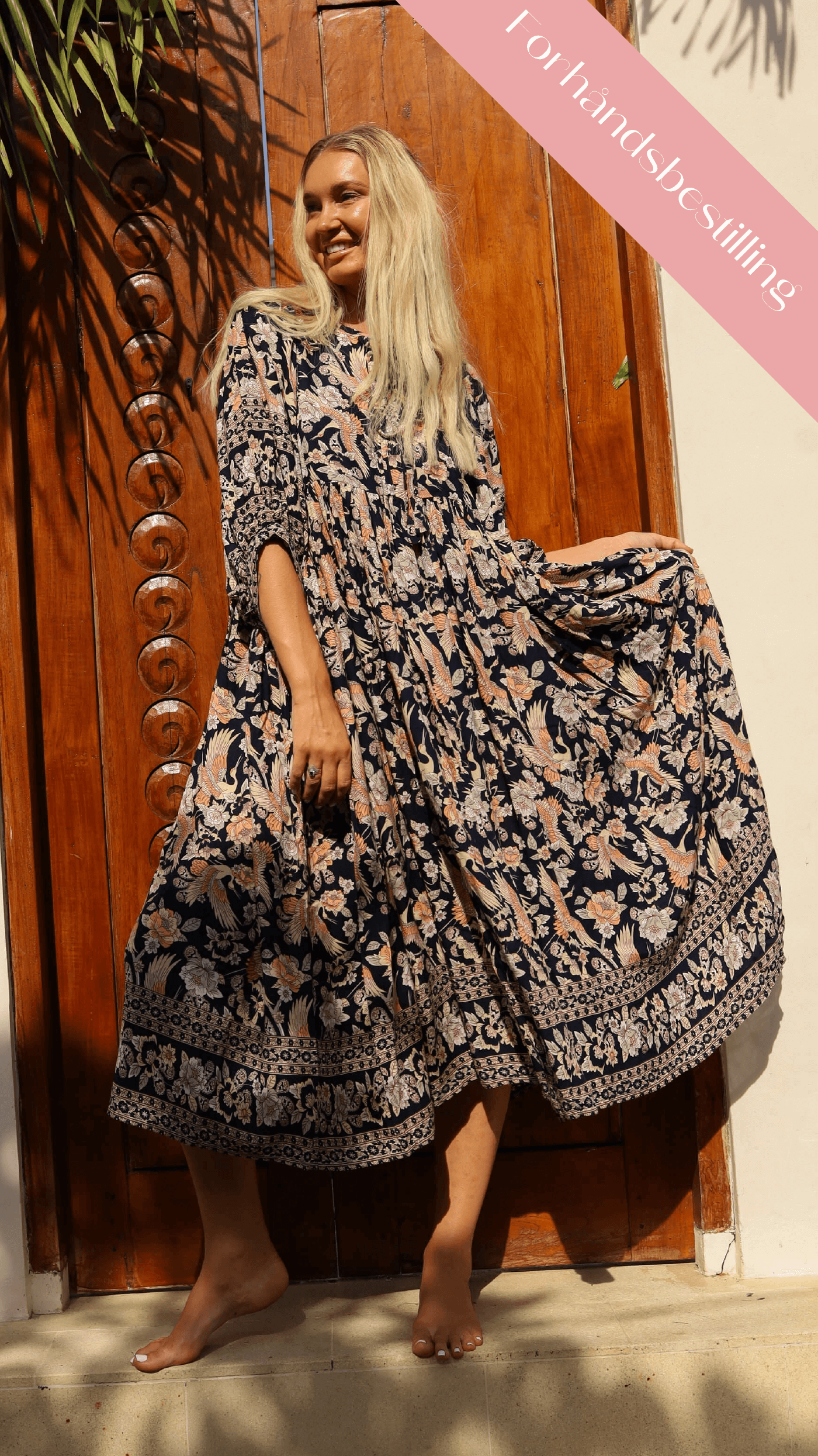 Blå kort bohemsk sommerkjole - Georgine kjole