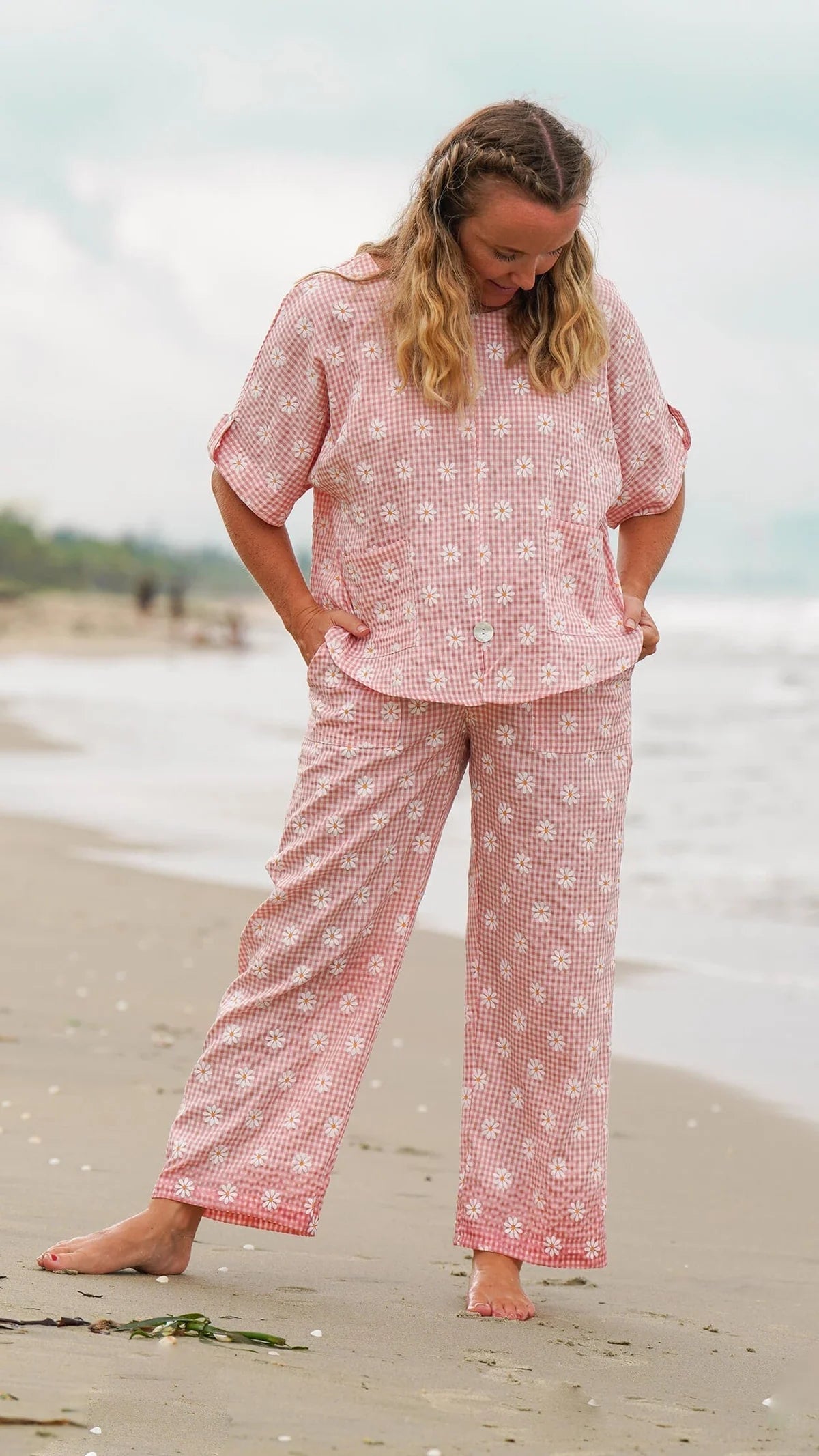 Kort jakke med rosa småruter - Pelikan skjorte