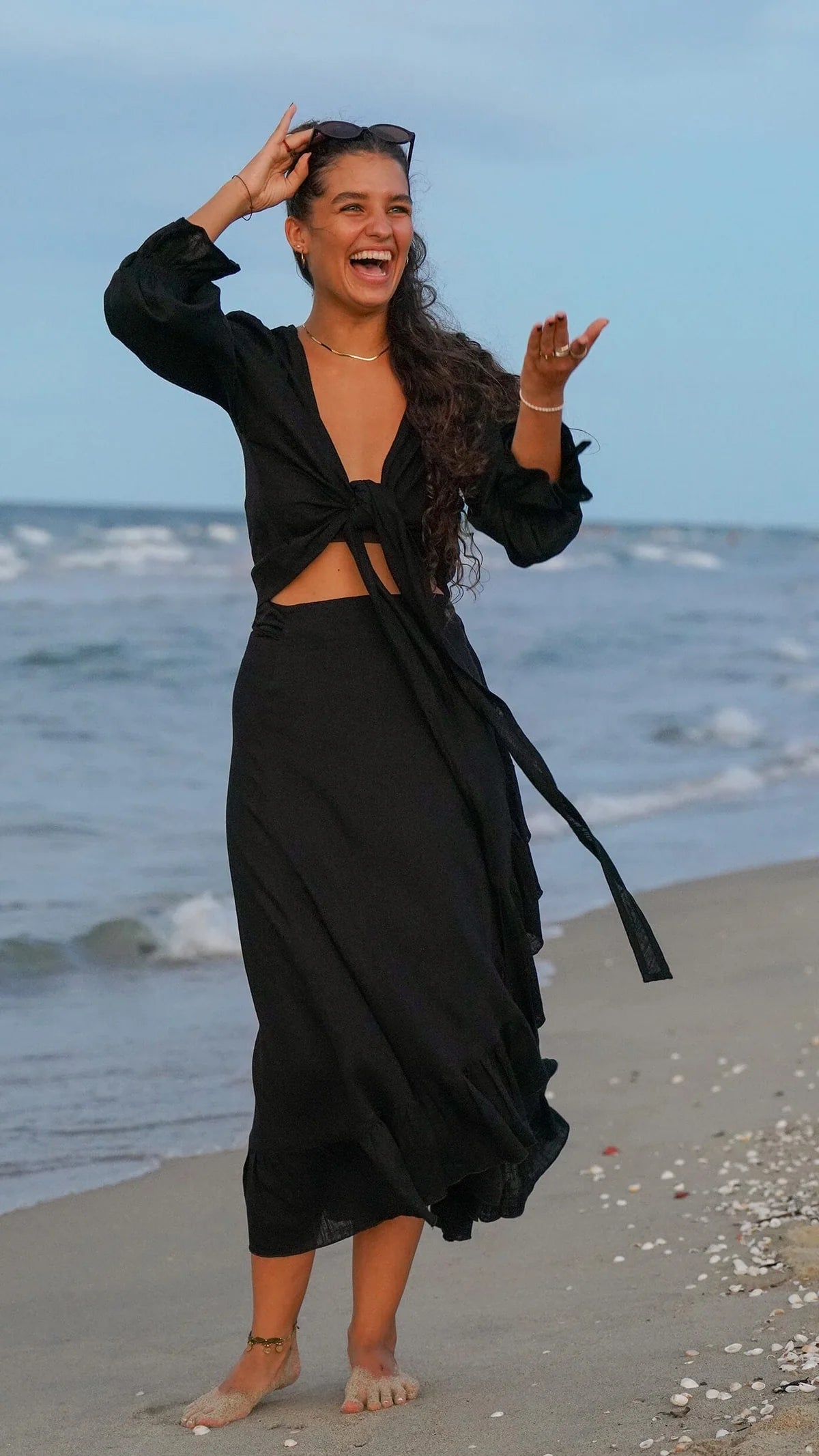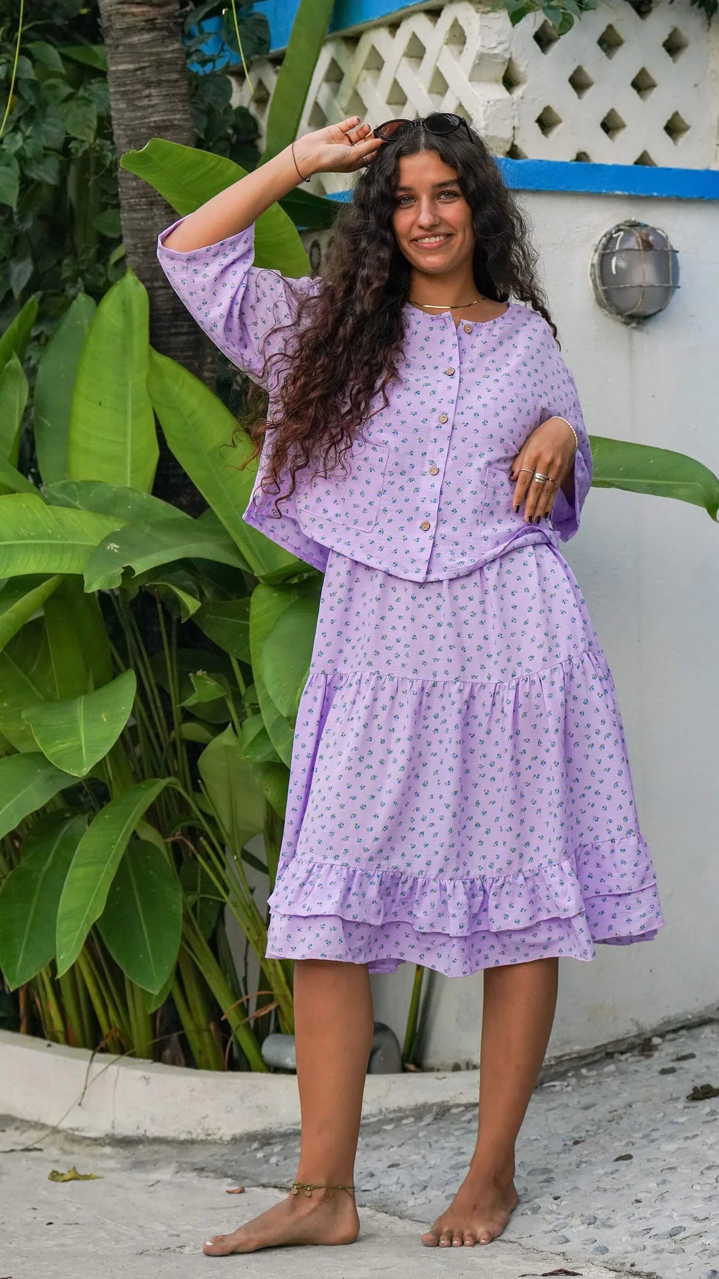 Vi støtter sakte og rettferdig arbeid, med få kolleksjoner i året og med en langsiktig tanke bak hvert design. Vi har sjekket forholdene der vi får skattene våres produsert, og vi vet med sikkerhet at syerskene har gode arbeidsforhold. Vi besøker dem en gang i året, det er et herlig møte hver gang. Les mer her