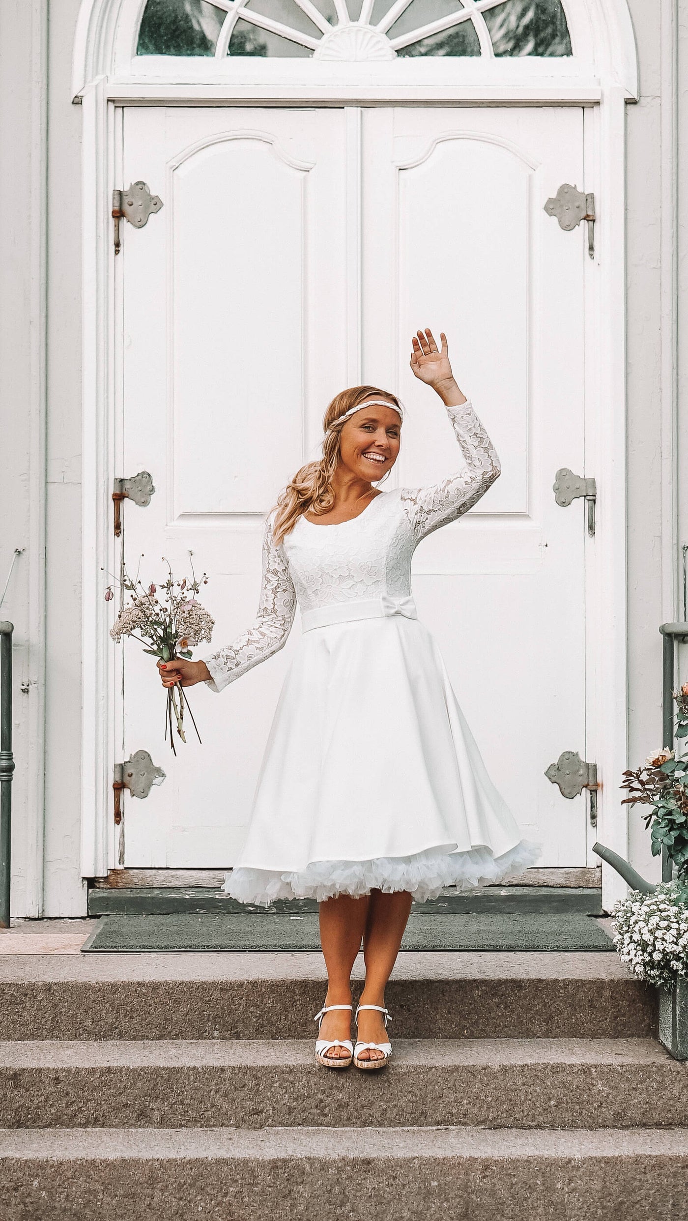 Rød kort klassisk kjole i kordfløyel - Gullris julekjole