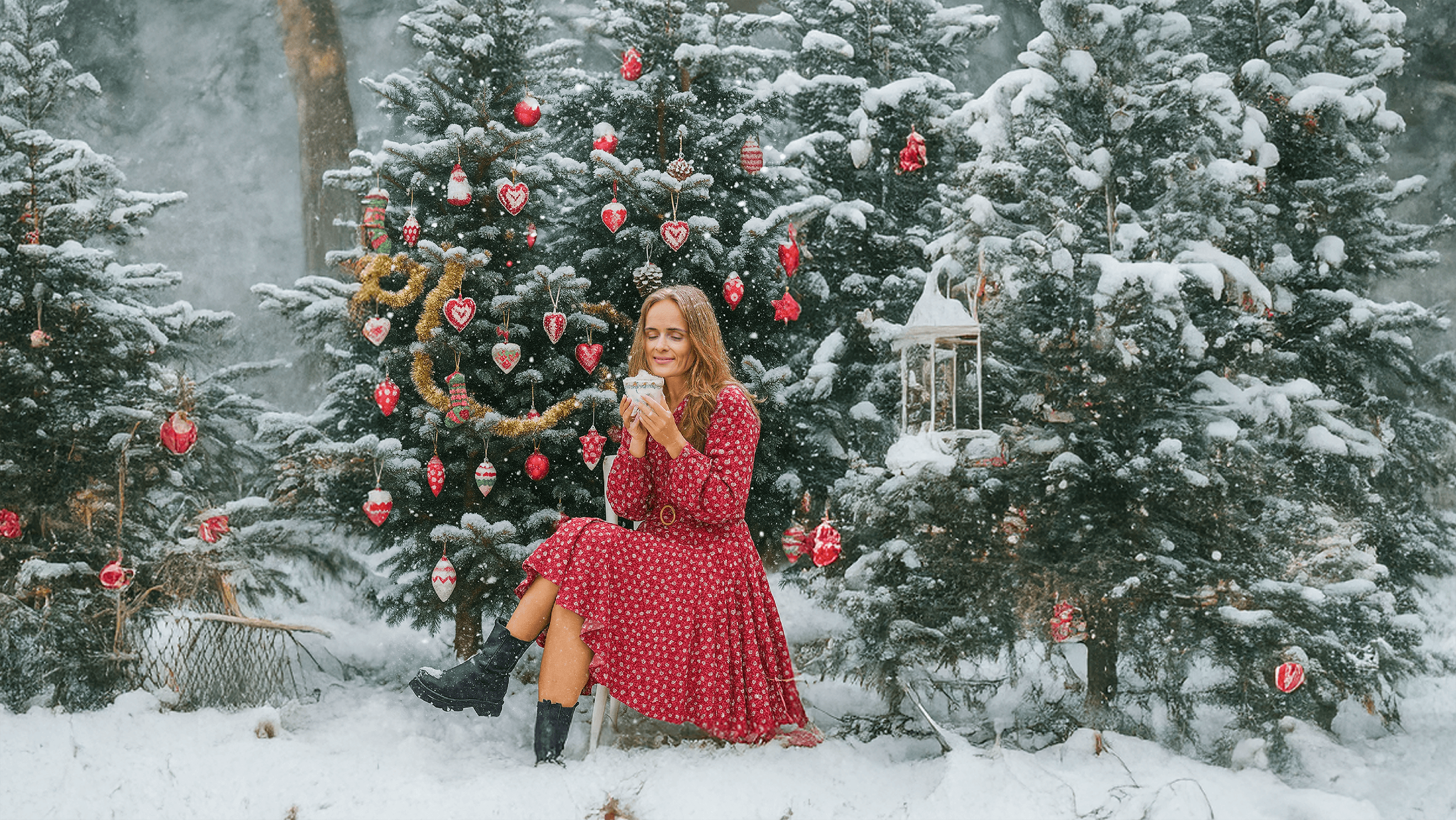 Dyp rød fotsid omslagskjole i bomull - Syrin julekjole