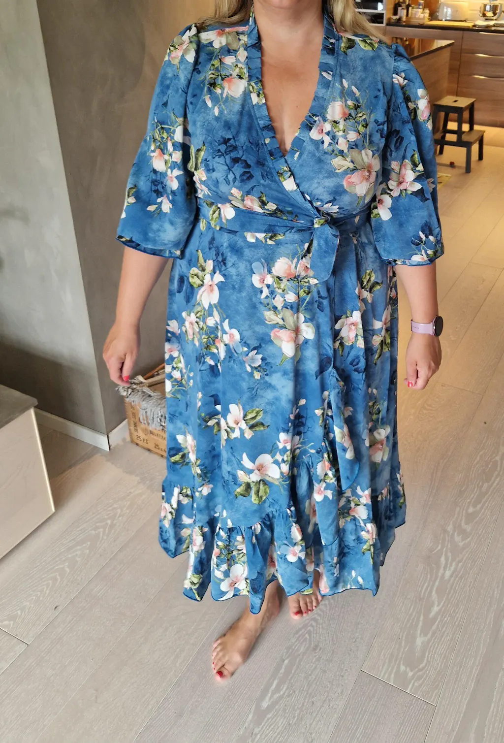 Fotsid blå og hvit omslagskjole - Syrin kjole